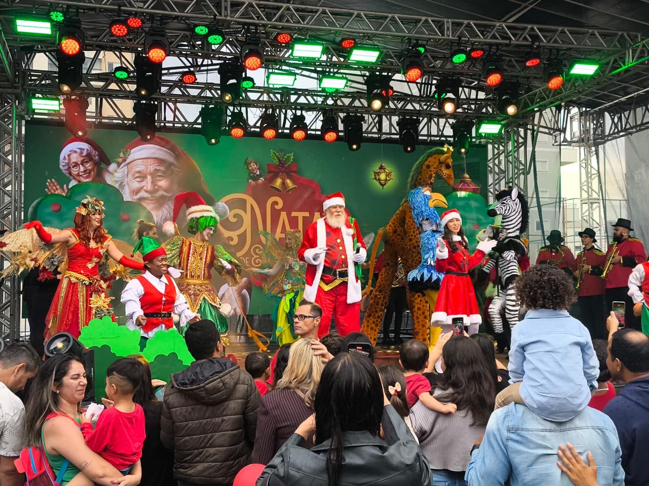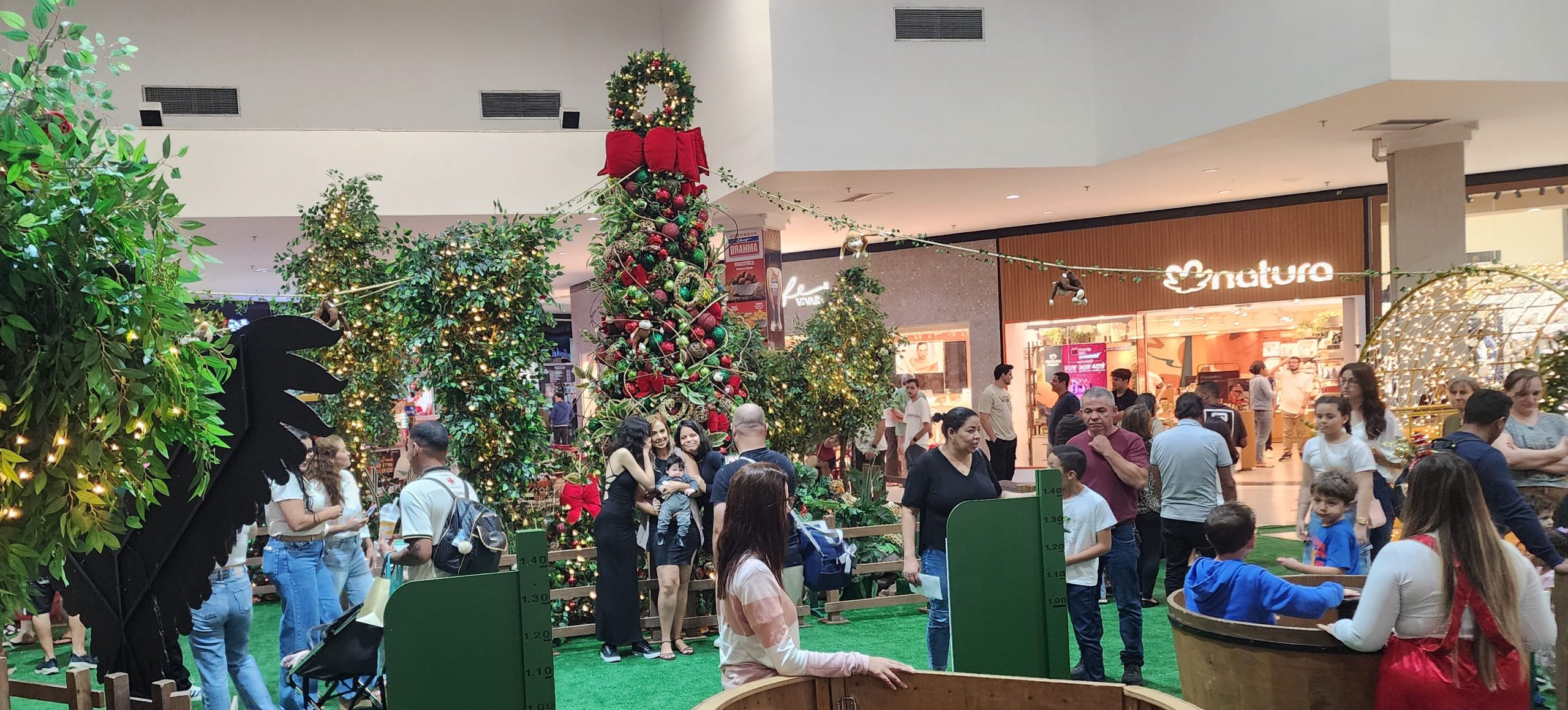 Após cumprimentar o público presente, o Papai Noel caminhou até a Praça de Eventos para realizar a abertura oficial da decoração natalina, que neste ano apresenta o tema “Floresta Brasileira”. Inspirada nos elementos da natureza, a ambientação convida o público a uma experiência sensorial, com árvores iluminadas, texturas naturais, diversos animais e cores que remetem à mata, criando um cenário encantador.