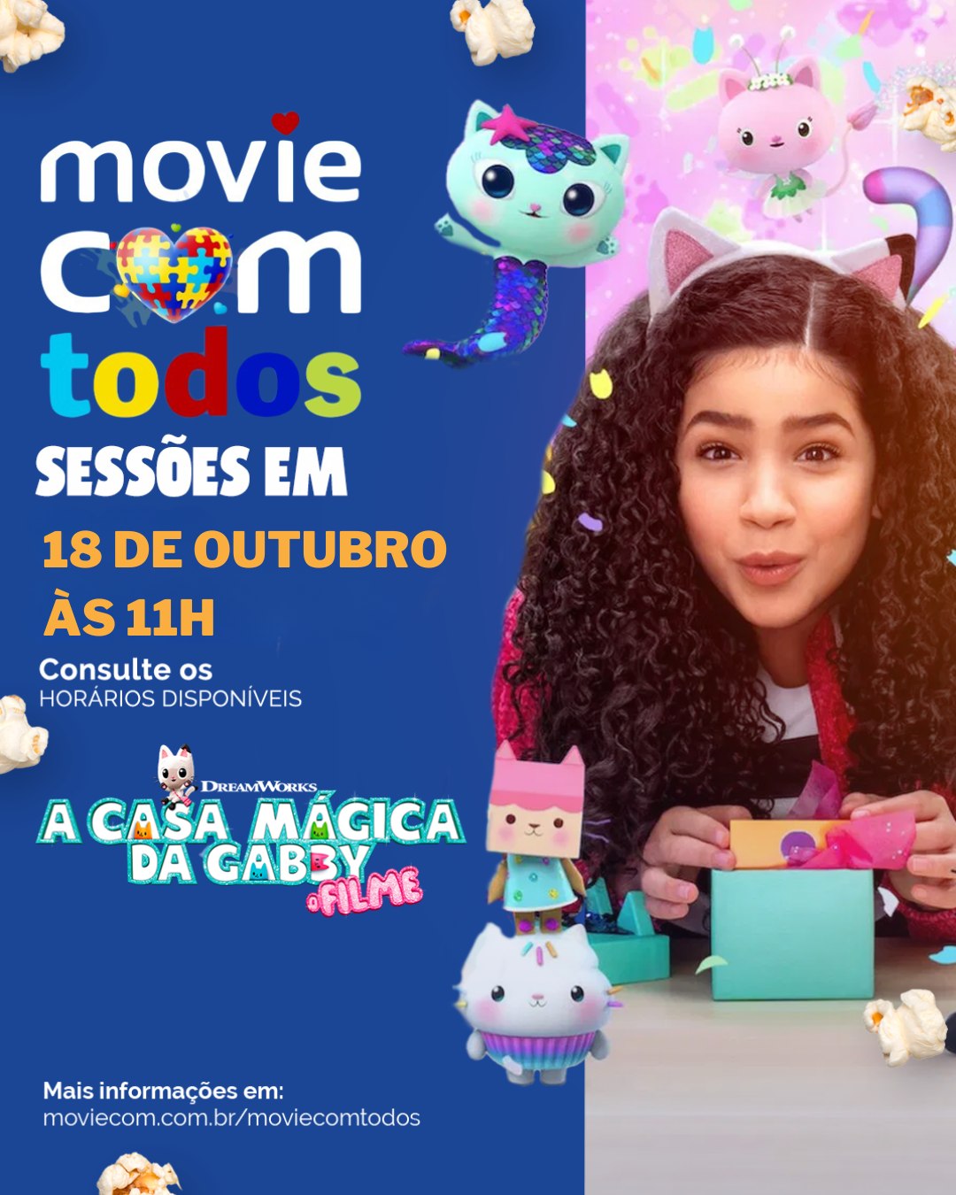 No sábado (18), o cinema Moviecom do Taubaté Shopping recebe mais uma edição do MoviecomTodos, uma sessão inclusiva, pensada especialmente para crianças e pessoas com Transtorno do Espectro Autista (TEA), PCDs e sensibilidades sensoriais. Desta vez, o filme em exibição será o lançamento “A Casa Mágica da Gaby”, a partir das 11h. Durante as sessões do MoviecomTodos, os clientes encontram um ambiente mais acolhedor, com iluminação suave, volume reduzido, liberdade para movimentação e sem exibição de trailers, tudo pensado mais inclusão e conforto aos participantes.