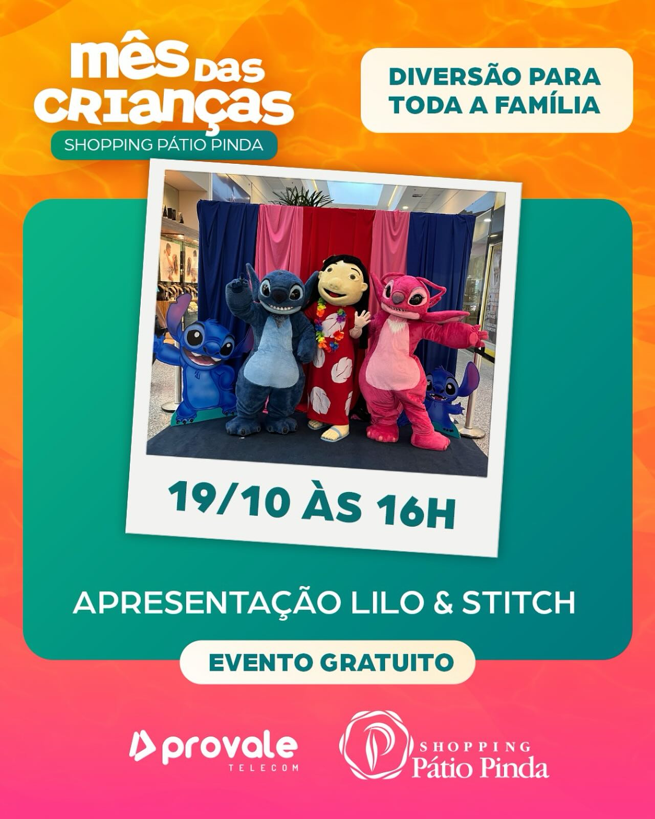 As oficinas kids, que fazem parte da programação mensal fixa e gratuita do shopping, continua neste domingo (19) com a Confecção de Laços e Pulseiras, das 14h às 20h, no Espaço Kids. Ainda no sábado (18), a programação conta com o Show Lilo & Stitch, às 16h, na Praça de Alimentação, oferecendo um momento de diversão e encantamento para o público infantil com um grande clássico do cinema.