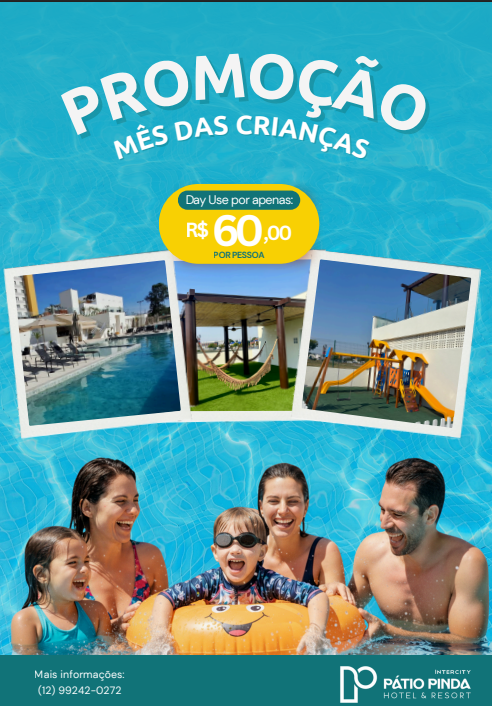 Outro grande atrativo é que a programação não se limita apenas aos hóspedes. Com a modalidade Day Use, o Intercity Pátio Pinda Hotel & Resort abre as portas para que famílias da região possam vivenciar toda a estrutura de lazer do empreendimento por um dia inteiro, em um ambiente seguro, confortável e repleto de comodidades. A iniciativa amplia as opções de lazer na cidade e oferece a oportunidade de transformar um simples fim de semana em uma experiência de resort. “Nossa proposta é transformar o Dia das Crianças em um mês inteiro de celebrações, unindo diversão, conforto e bem-estar”, destaca Edmilson Pereira, Gerente Geral do Intercity Pátio Pinda Hotel & Resort.