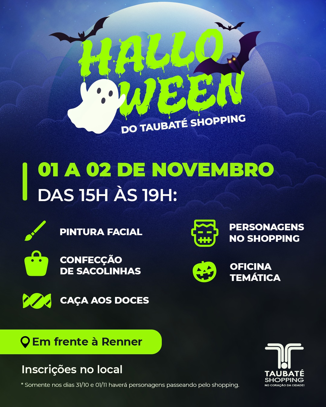 O Taubaté Shopping, administrado pelo Grupo AD, preparou uma programação especial para celebrar o Halloween com muita diversão e atividades gratuitas para toda a família. As ações acontecem entre os dias 31 de outubro e 2 de novembro, com oficinas criativas, brincadeiras e a presença de personagens temáticos que prometem divertir o público.