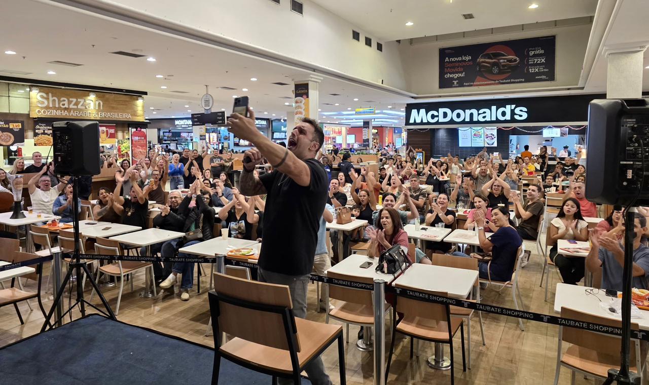 O Taubaté Shopping, administrado pelo Grupo AD, promoveu, na última quinta-feira (26), uma noite repleta de humor e risadas com a apresentação do comediante Rodrigo Capella. O espetáculo de stand-up comedy celebrou o Dia do Comediante e atraiu grande público à Praça de Alimentação do centro de compras.