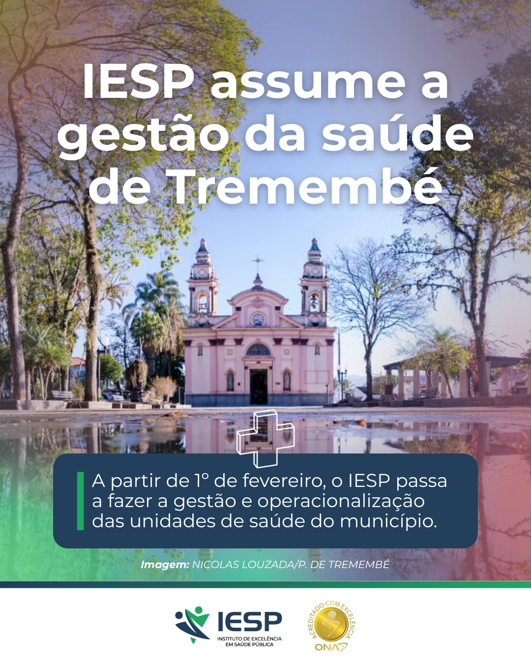A partir do dia 1° de fevereiro de 2026, o Instituto de Excelência em Saúde Pública (IESP) passa a ser o novo responsável pela gestão e operacionalização da Atenção primária à saúde, Unidades especializadas e Pronto atendimento 24h do município de Tremembé.