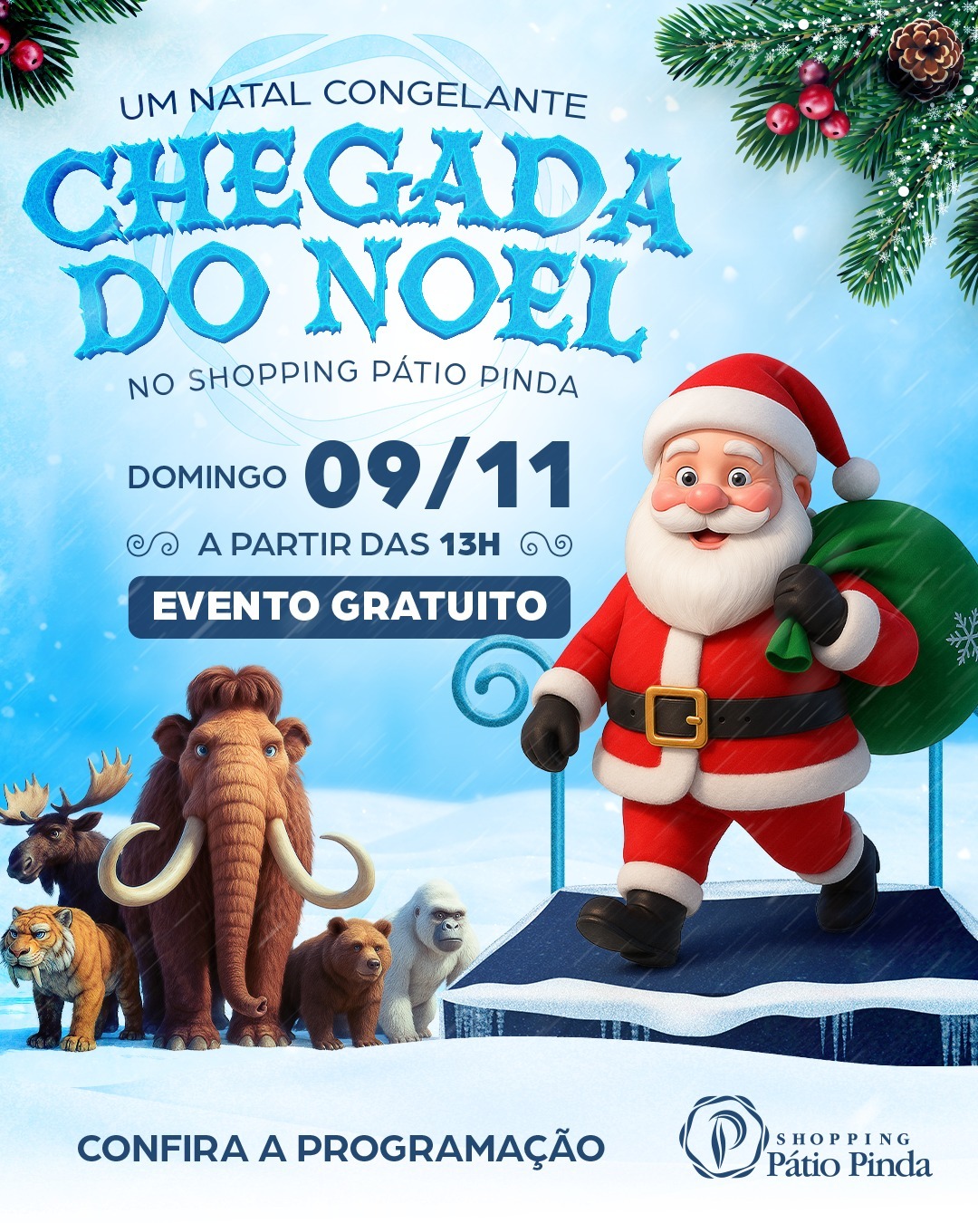 Com o tema Natal Congelante, a temporada natalina chega ao Shopping Pátio Pinda, administrado pelo Grupo AD, prometendo encantar o público com experiências pré-históricas. No dia 9 de novembro, o público poderá acompanhar a tão aguardada chegada do Papai Noel e a abertura oficial da decoração de Natal, que traz uma exposição inédita com mais de 20 réplicas em tamanho real de animais da Era do Gelo.