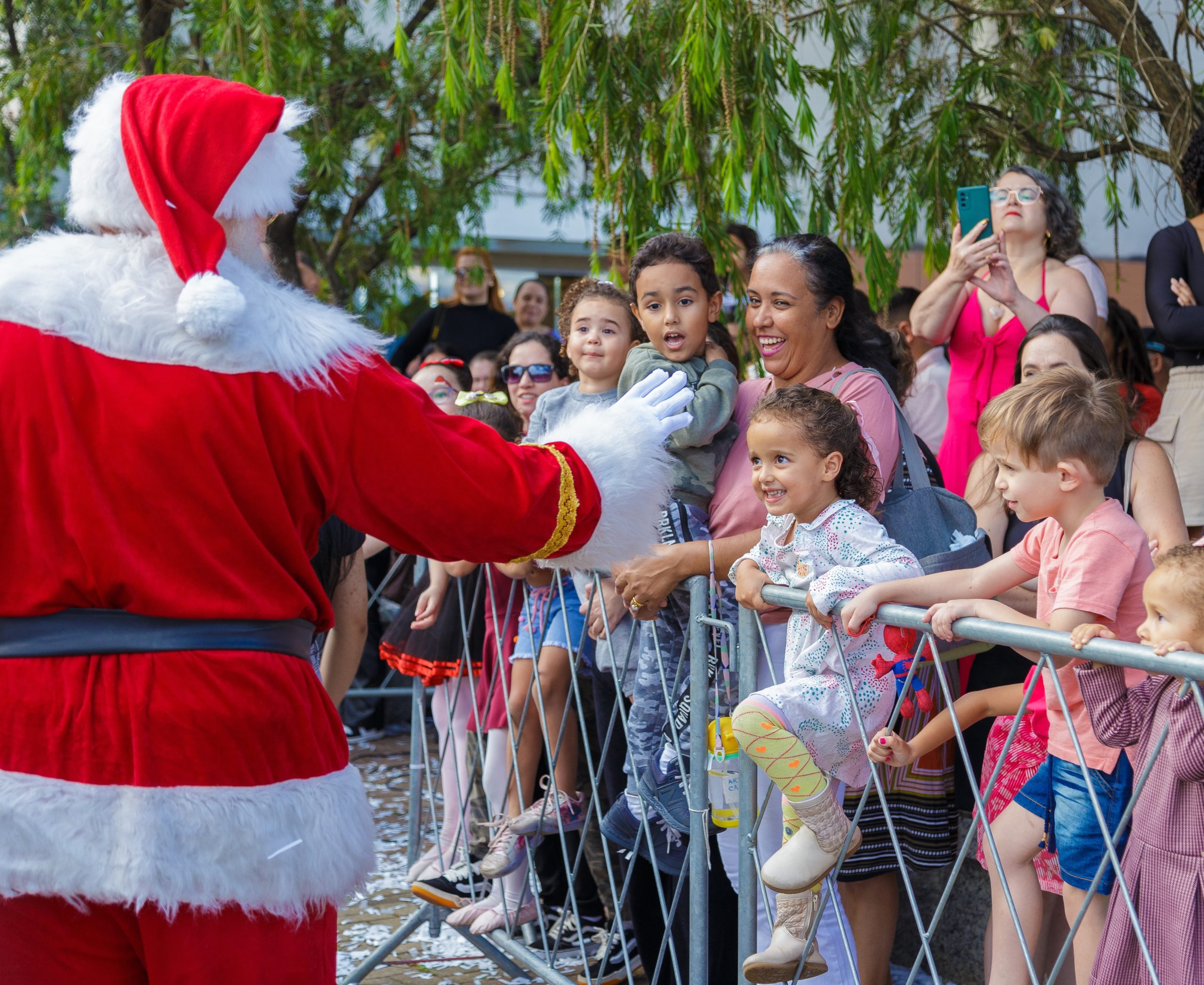 Desde o início da tarde, as famílias aproveitaram atividades gratuitas como pintura facial, distribuição de pipoca e apresentações de dança de escolas e companhias da região, entre elas, Colégio Coin Júnior, SD Ballet, Companhia Julia Pyles, Dancing Soul e Sonhar’t. O ponto alto da programação foi o espetáculo “Natal Congelante”, que envolveu o público em uma narrativa repleta de fantasia e personagens inspirados no universo pré-histórico.