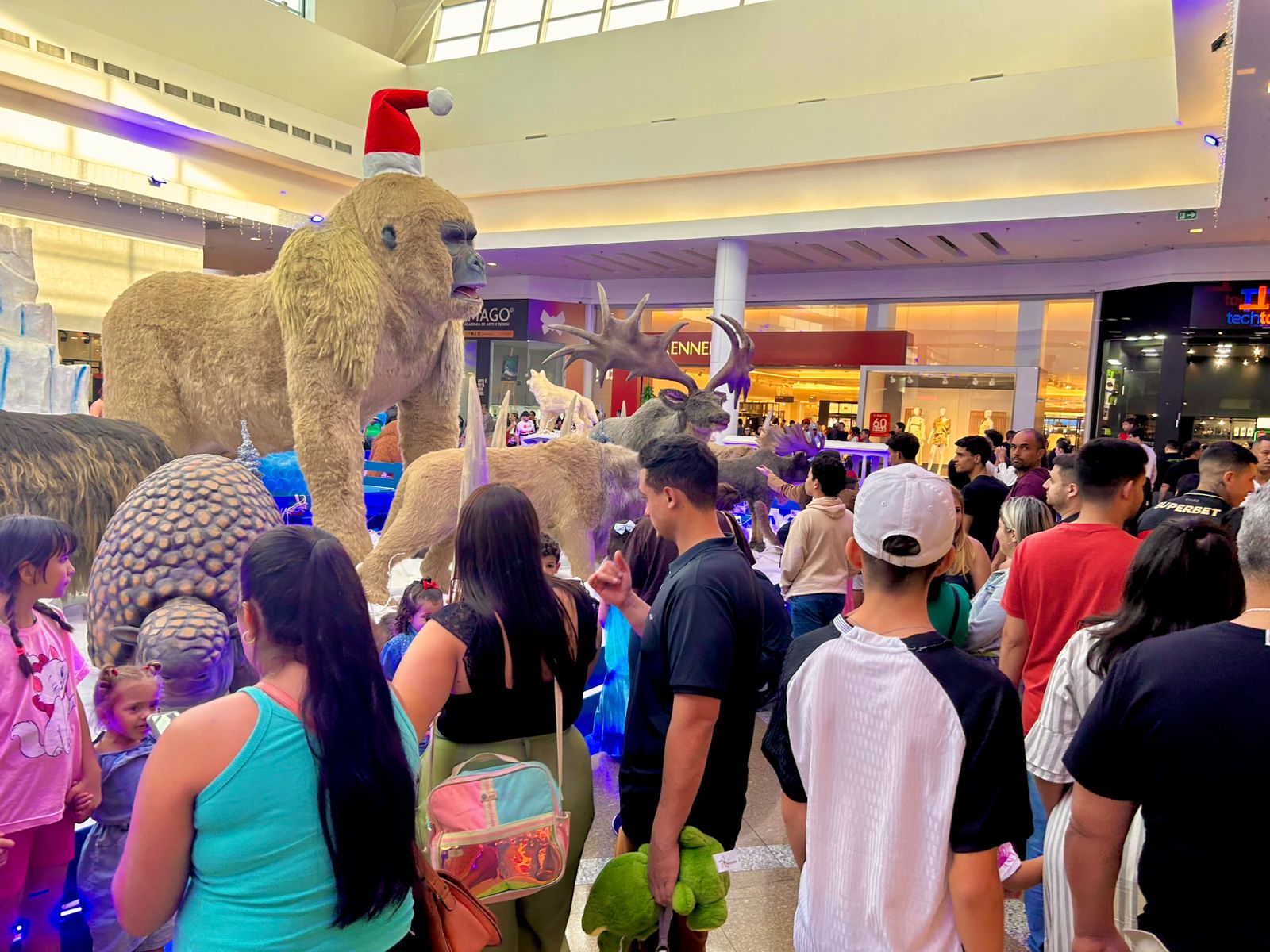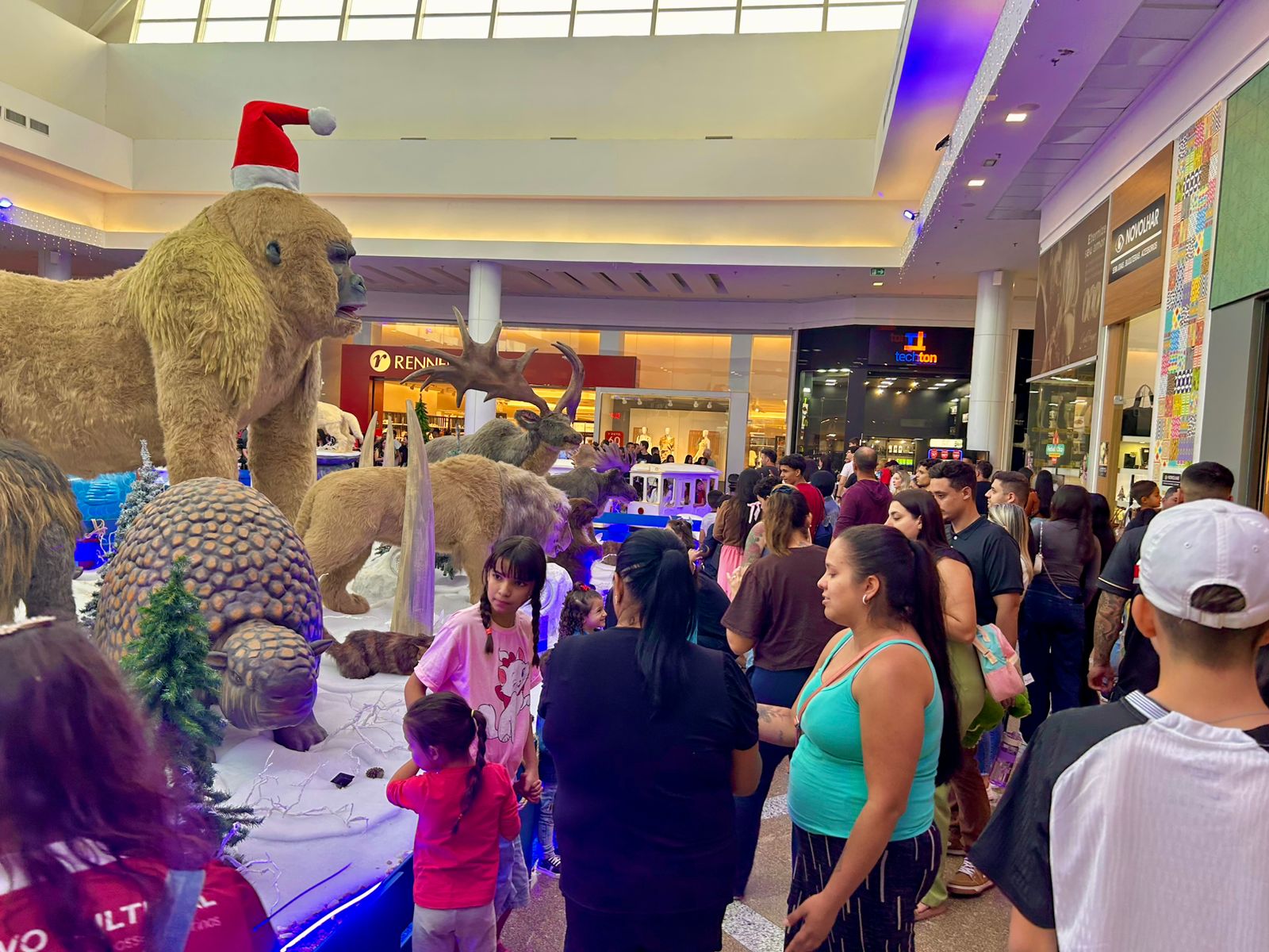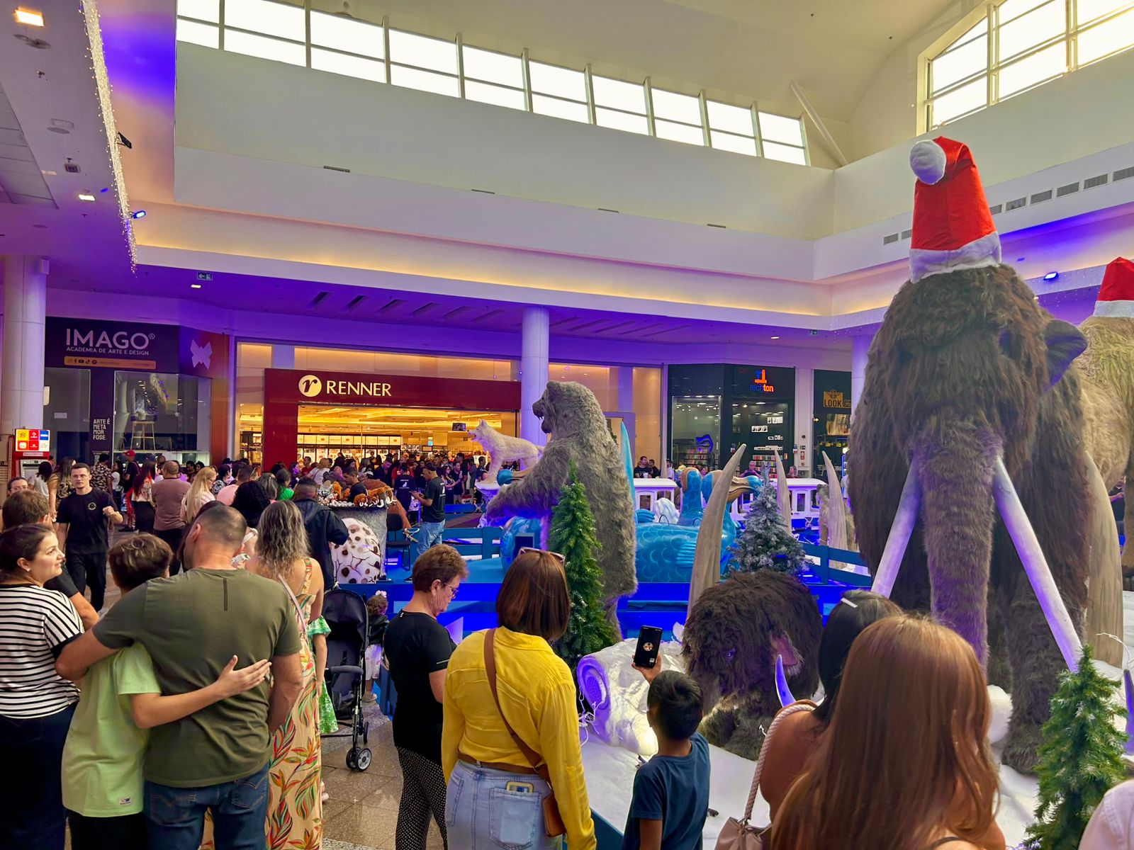 Após a apresentação, o público foi convidado a conhecer a nova decoração natalina, que surpreende quem chega com 23 réplicas em tamanho real de animais da Era do Gelo. As esculturas se movimentam, emitem sons e recriam o ambiente gelado de forma realista, com destaque para o mamute-lanoso, o tigre-dentes-de-sabre, o bicho-preguiça gigante e o rinoceronte-lanoso. Uma experiência que une encanto e conhecimento para todas as idades.