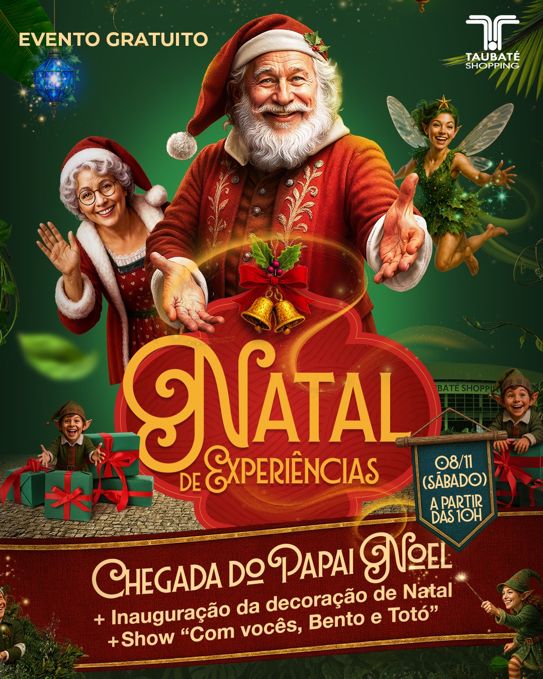 “O Natal é, sem dúvida, uma das datas mais importantes para o varejo. Neste período, recebemos nossos clientes com experiências únicas, oferecemos atrações e oportunidades de compra, como a promoção de fim de ano, e fortalecemos a relação com o público. Cada detalhe da programação do fim de semana de 8 e 9 de novembro foi pensado para encantar e tornar a visita ao Taubaté Shopping realmente inesquecível,” destaca Ana Cristina, Gerente Geral do Taubaté Shopping.