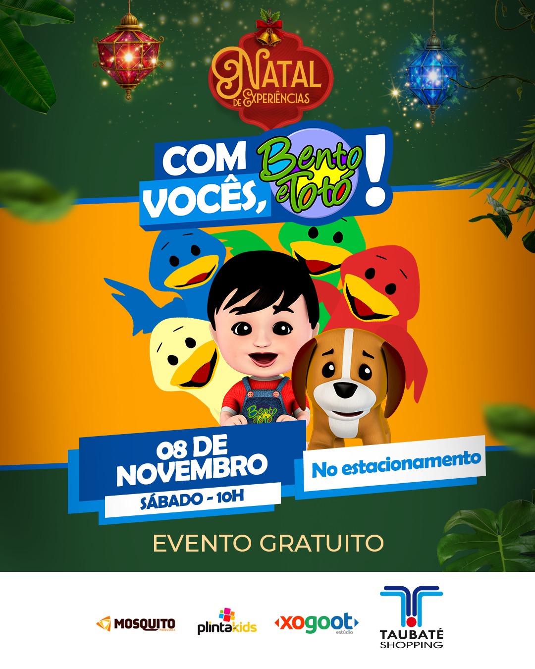 A programação começa no sábado (8), a partir das 10h, com o show infantil “Com vocês, Bento e Totó”, conhecida por seus vídeos e músicas que fazem sucesso entre as crianças no YouTube, como o Funk do Patinho e Misturando os Bichos. Em seguida, as atividades continuam para o público infantil, com distribuição de pipoca e algodão-doce, além de oficina de pintura de rosto. A festa segue com a tradicional chegada do Papai Noel, que será recebido em grande estilo no centro de compras e lazer, momento que promete emocionar toda a família.