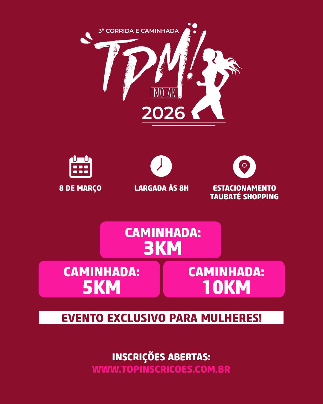 topinscricoes.com.br/produto/3a-corrida-e-caminhada-tpm-no-ar-2026 | WhatsApp: 12 98216-4944